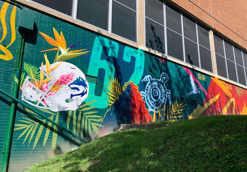 To cope and remember, the 600-student school observed a Day of Peace on the anniversary, seeking to bring additional support to a community that is still traumatized. To start the day, students held a moment of silence. Over the past year, they helped paint a mural on the wall of the school closest to where the shooting occurred. The mural depicts, among other symbols, a football helmet filled with flowers and a large rendering of Nicolas’ jersey number, 62.