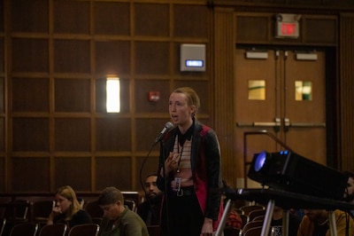 “These layoffs did not need to happen,” said Langsdorf, who was sitting with a small group of DFT members near the front of the auditorium. “They caused a lot of stress, and educators do not get the respect they deserve.”