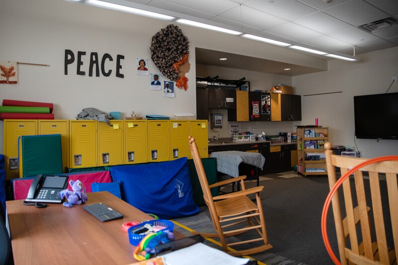 The classrooms, decorated with cheerful colors and maps, are on one side of the building of the Dahlia Campus for Health and Well-Being. On the other side are the mental health center’s counseling offices where children get individual and family therapy.