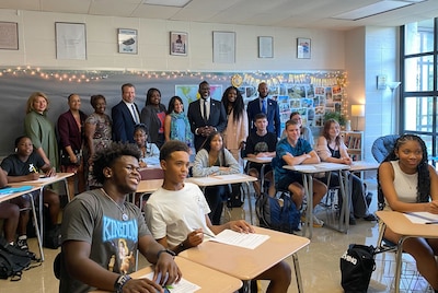 “I hope that you will lean into the collaborative approach that your teacher is taking, because that is what we’re doing as a city,” Johnson told the students. “We’re building relationships, we’re collaborating so that we can make collective decisions together that ultimately can help transform people’s lives.”
